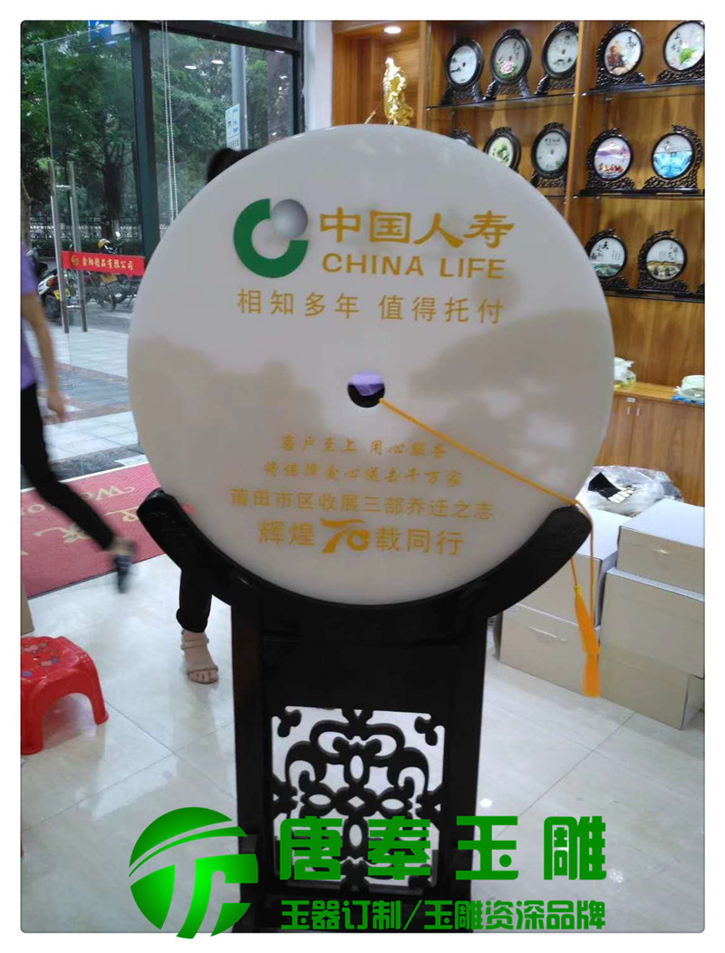 中國人壽周年紀念浮雕公司logo玉平安扣用于竣工開業、上市慶典、形象宣傳、入司紀念、團體聚會等地方浮雕圖案,公司logo,刻字等,既有品位又有收藏價值。