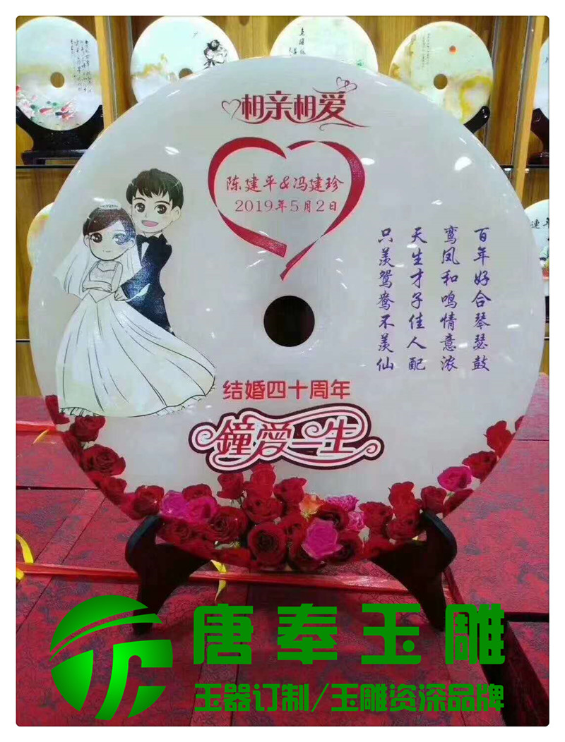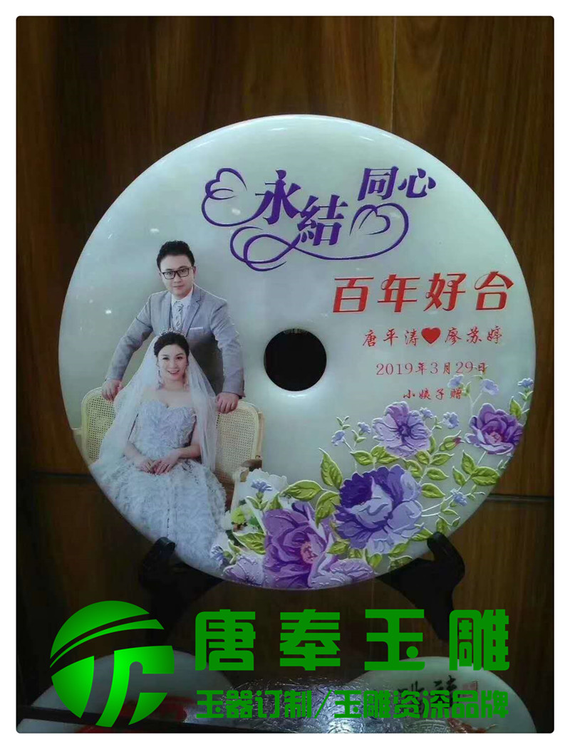結(jié)婚紀(jì)念浮雕圖案玉平安扣用于竣工開(kāi)業(yè)、周年紀(jì)念、畢業(yè)紀(jì)念、結(jié)婚紀(jì)念等地方,浮雕圖案,公司logo,刻字等,既有品位又有收藏價(jià)值。